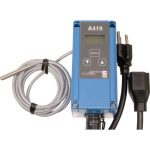 El control serie A419 es un control electrónico de temperatura para voltaje de línea, de una sola etapa, con salida de relevador de Un Polo-Doble Tiro (SPDT). Tiene modalidades de operación de calefacción y refrigeración con punto de ajuste y diferencial ajustables, un teclado con seguro, retardador ajustable anti ciclo-corto y entrada binaria para cambiar el punto de ajuste remotamente. El A419 combina la capacidad de sensor remoto y sensores intercambiables con exactitud electrónica, todo en una cubierta de plástico de alto impacto NEMA 1 conveniente para instalar en superficie o riel DIN o con cubierta NEMA 4X resistente al agua.